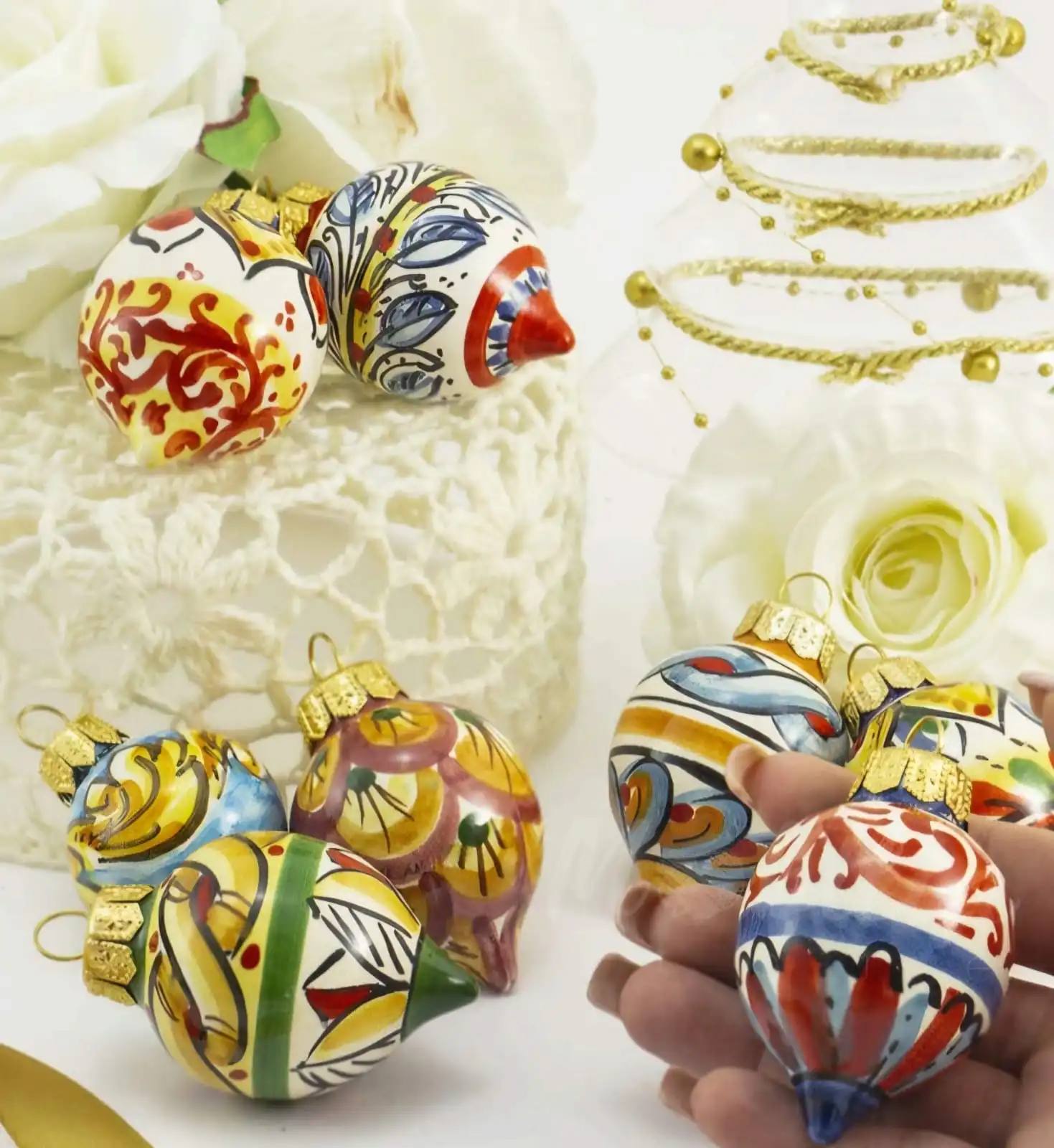 Give a unique yet luxurious and traditional touch to your Christmas Tree this year with these wonderful Christmas balls especially handcrafted in Sicily by Sicilian Artists from Camastra and Caltagirone.